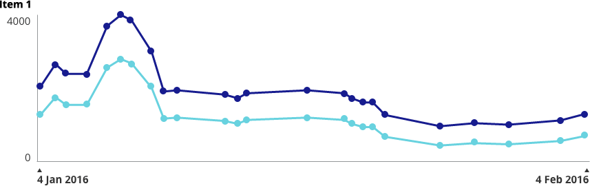 I'm a big fan of interactive charts where a user can hover over specific data points and view tooltips (do we still call them that?). When designing this, the data line and point should be clearly isolated, like so: